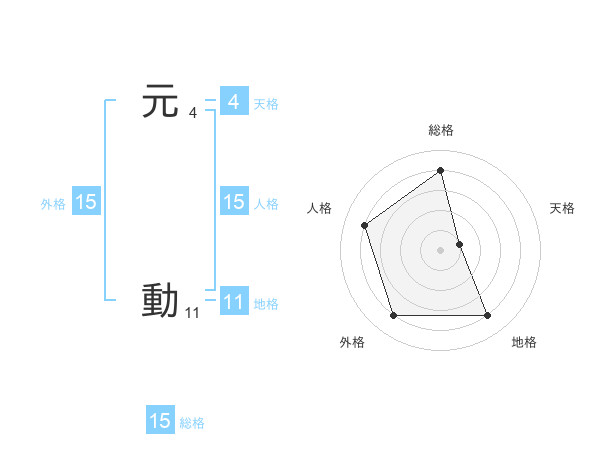 元 動さんの外格は15画の4点!