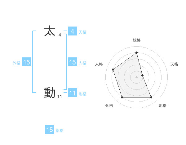太 動さんの外格は15画の4点!