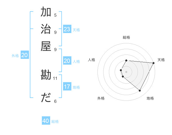 加治屋 勘ださんを姓名の画数から五運を鑑定