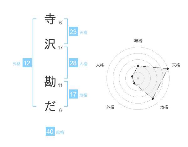 寺沢 勘ださんの天格は23画の5点!