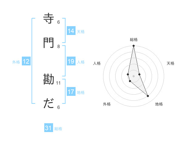 寺門 勘ださんを姓名の画数から五運を鑑定