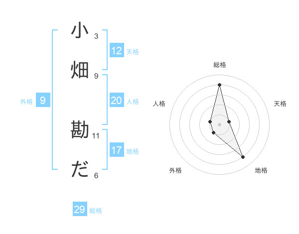 小畑 勘ださんを姓名の画数から五運を鑑定