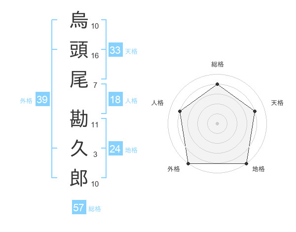 烏頭尾 勘久郎さんの総格は57画の4点!