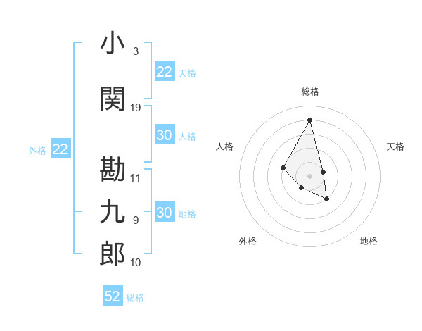 小関 勘九郎さんの総格は52画の4点!