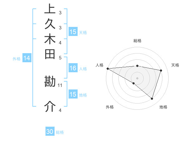 上久木田 勘介さんを姓名の画数から五運を鑑定