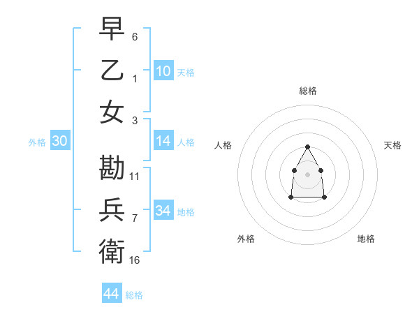 早乙女 勘兵衛さんを姓名の画数から五運を鑑定