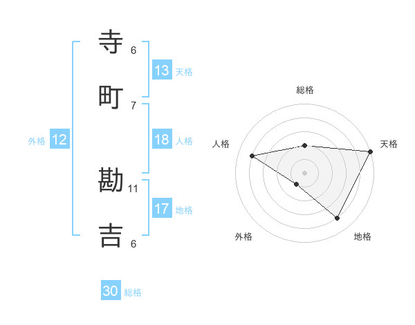 寺町 勘吉さんを姓名の画数から五運を鑑定