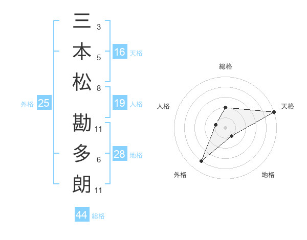 三本松 勘多朗さんを姓名の画数から五運を鑑定