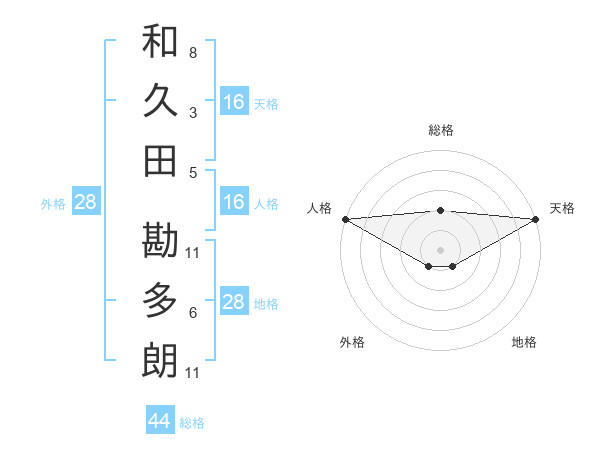 和久田 勘多朗さんを姓名の画数から五運を鑑定