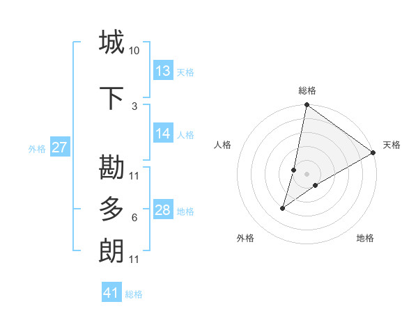 城下 勘多朗さんを姓名の画数から五運を鑑定