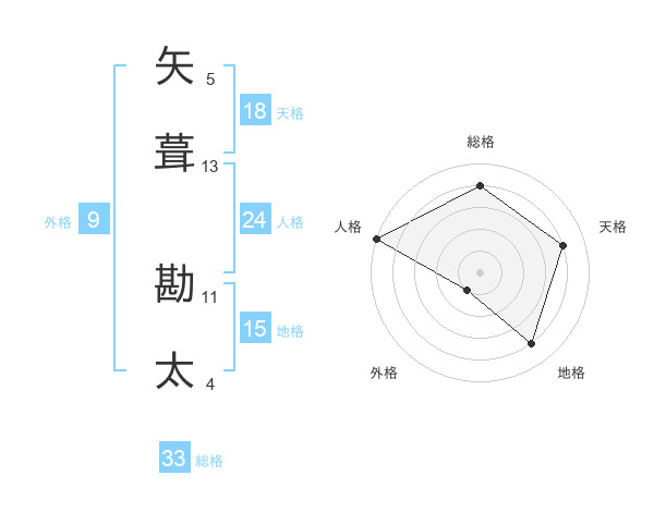 矢葺 勘太さんを姓名の画数から五運を鑑定
