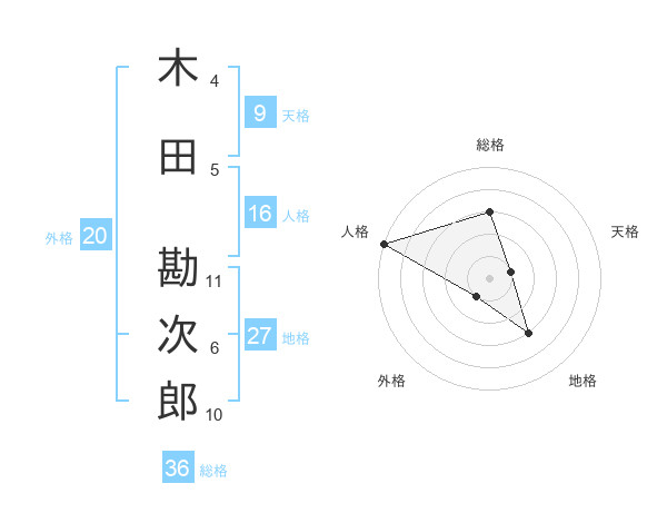 木田 勘次郎さんを姓名の画数から五運を鑑定