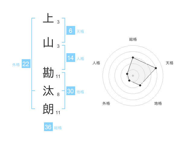 上山 勘汰朗さんを姓名の画数から五運を鑑定