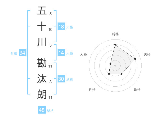 五十川 勘汰朗さんを姓名の画数から五運を鑑定
