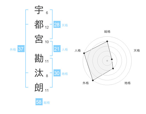 宇都宮 勘汰朗さんの外格は37画の5点!