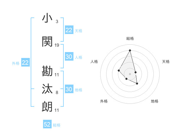 小関 勘汰朗さんの総格は52画の4点