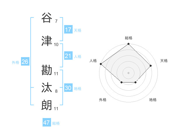 谷津 勘汰朗さんを姓名の画数から五運を鑑定