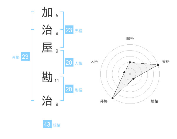 加治屋 勘治さんを姓名の画数から五運を鑑定