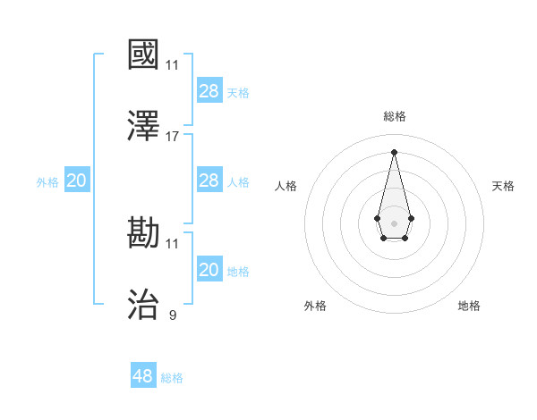 國澤 勘治さんの総格は48画の4点!
