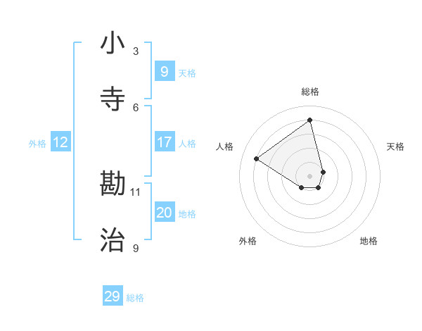 小寺 勘治さんの総格は29画の4点!