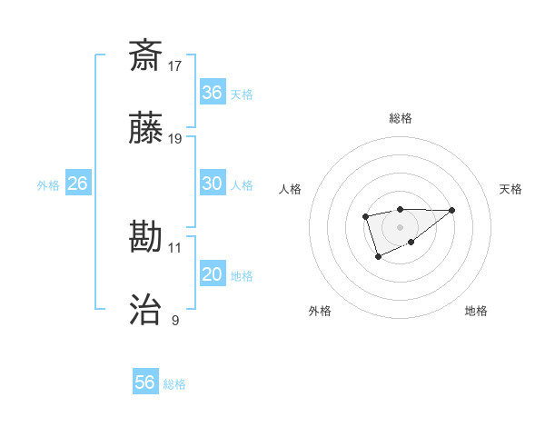斎藤 勘治さんを姓名の画数から五運を鑑定