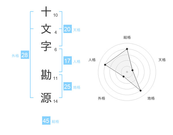 十文字 勘源さんの総格は45画の4点!