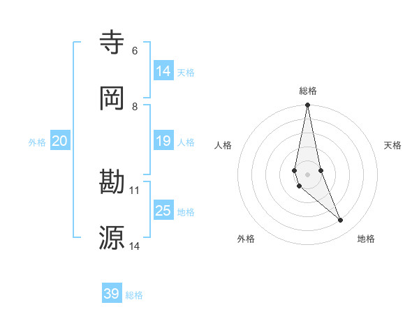 寺岡 勘源さんの総格は39画の5点!