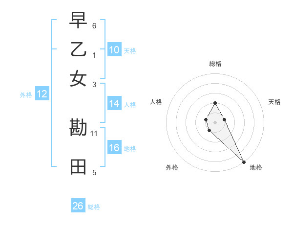 早乙女 勘田さんを姓名の画数から五運を鑑定