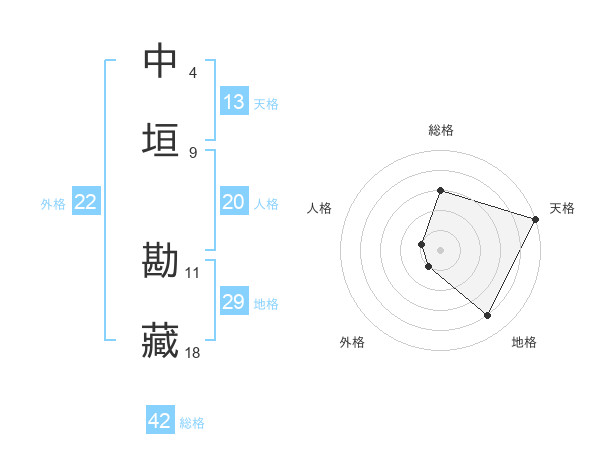 中垣 勘藏さんの総格は42画の3点!