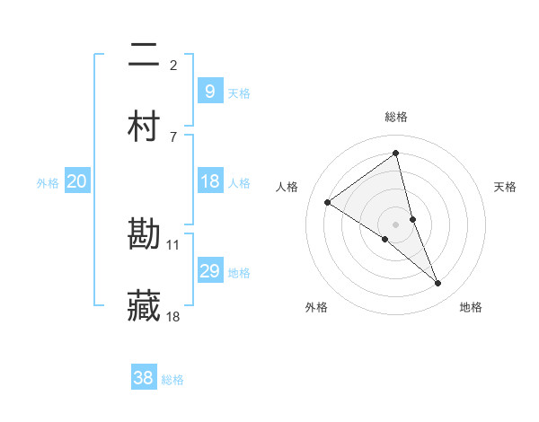二村 勘藏さんの総格は38画の4点!