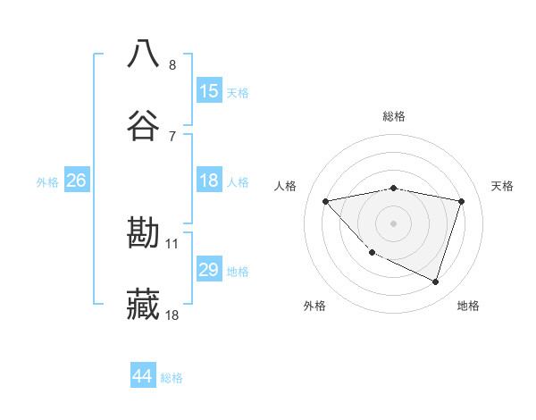 八谷 勘藏さんを姓名の画数から五運を鑑定