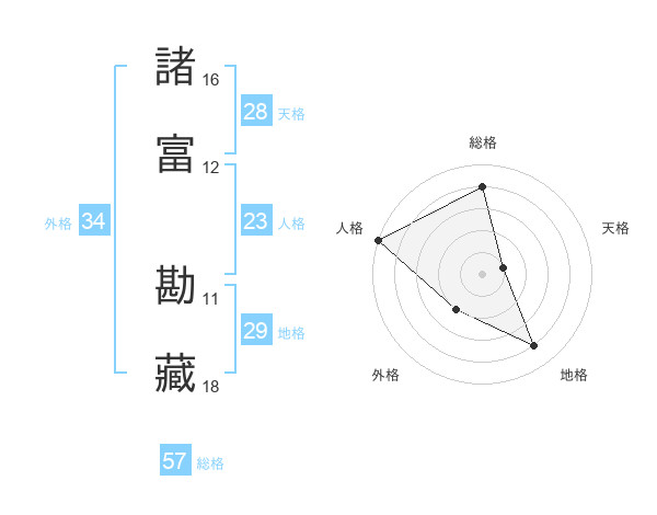 諸富 勘藏さんの総格は57画の4点!