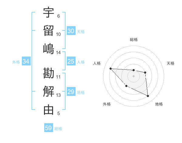 宇留嶋 勘解由さんを姓名の画数から五運を鑑定