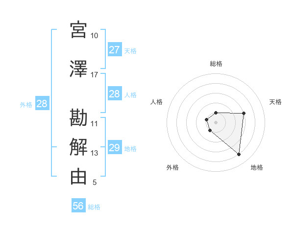 宮澤 勘解由さんを姓名の画数から五運を鑑定