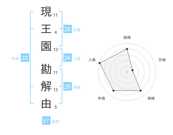 現王園 勘解由さんを姓名の画数から五運を鑑定