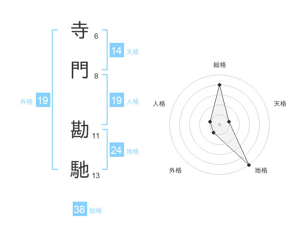 寺門 勘馳さんを姓名の画数から五運を鑑定
