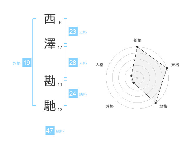 西澤 勘馳さんを姓名の画数から五運を鑑定