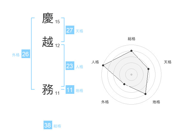 慶越 務さんの総格は38画の4点!