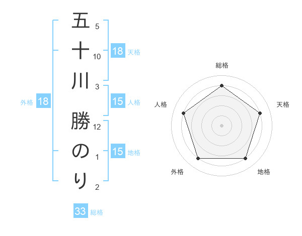 五十川 勝のりさんを姓名の画数から五運を鑑定