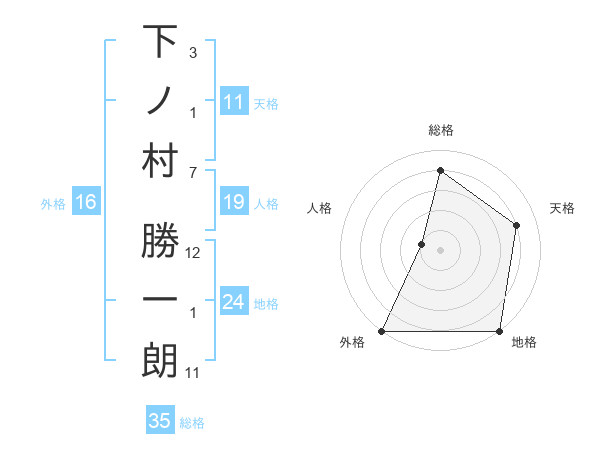 下ノ村 勝一朗さんの総格は35画の4点!