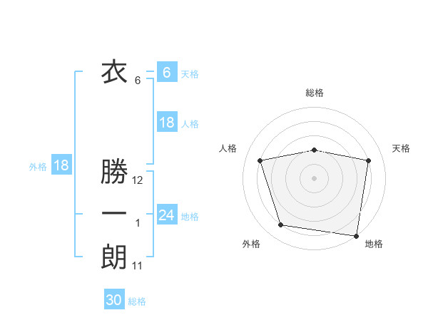 衣 勝一朗さんを姓名の画数から五運を鑑定