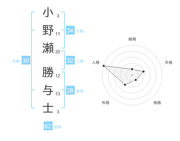 小野瀬 勝与士さんを姓名の画数から五運を鑑定