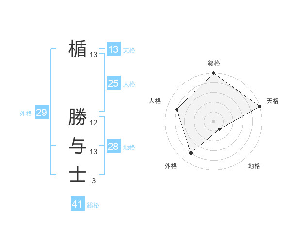 楯 勝与士さんを姓名の画数から五運を鑑定
