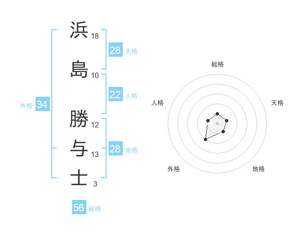 浜島 勝与士さんを姓名の画数から五運を鑑定