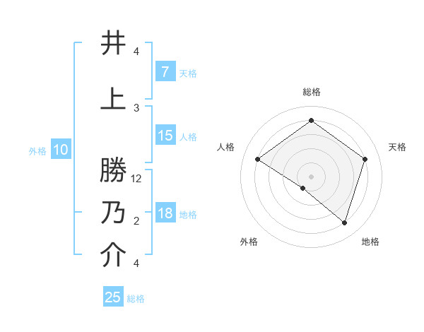 井上 勝乃介さんの総格は25画の4点!
