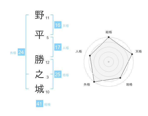 野平 勝之城さんの総格は41画の5点!
