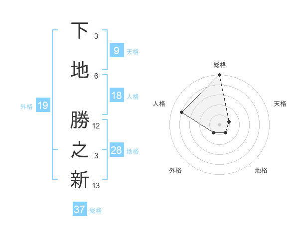 下地 勝之新さんを姓名の画数から五運を鑑定