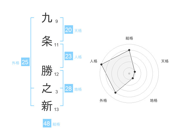 九条 勝之新さんを姓名の画数から五運を鑑定