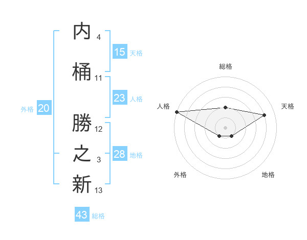 内桶 勝之新さんを姓名の画数から五運を鑑定