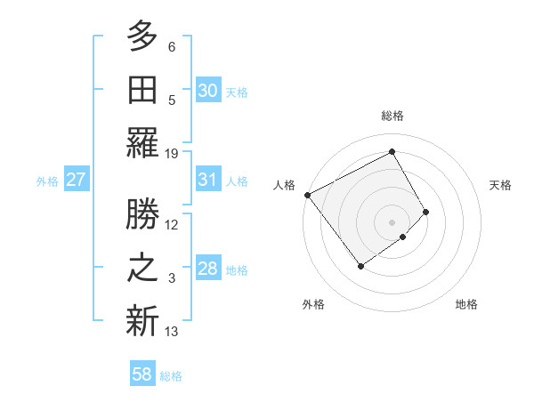 多田羅 勝之新さんを姓名の画数から五運を鑑定